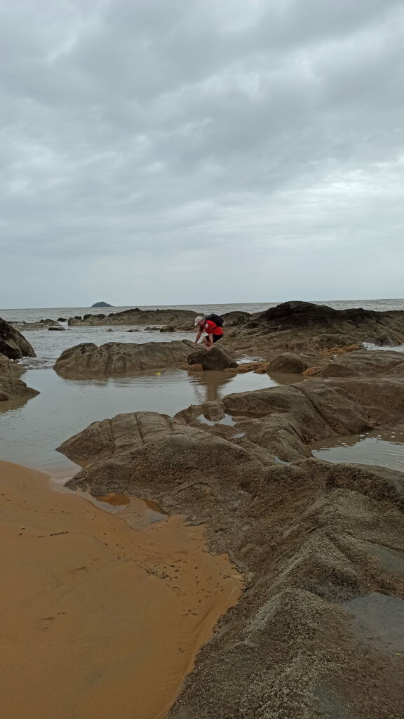 - Un peu de crapahutage prudent sur des rochers parfois glissants … malgré tout quelques égratignures et un sauvetage de gourde pour Denis, une légère entorse au poignet pour moi (vive l’argile et les huiles essentielles, ce matin c’est presque réglé) 😅